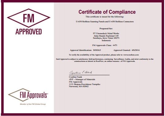Teknologi atap U-650 mengantongi sertifikat internasional untuk standar atap kelas wahid. (Sumber: Utomodeck)