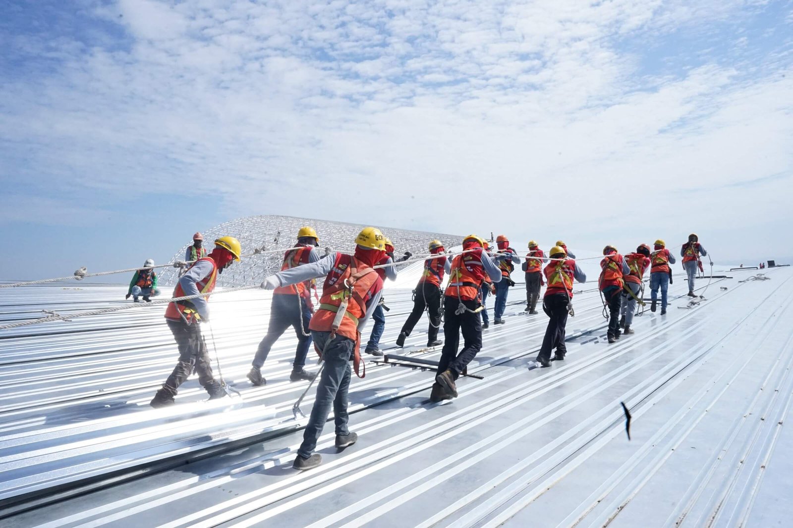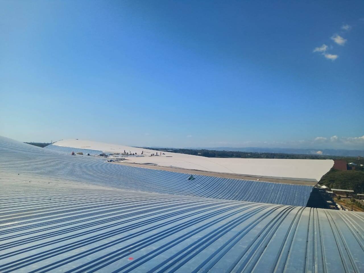 Pemasangan atap Bandara Hasanuddin Sumber: Dokumentasi PT. Utomodeck Metal Works